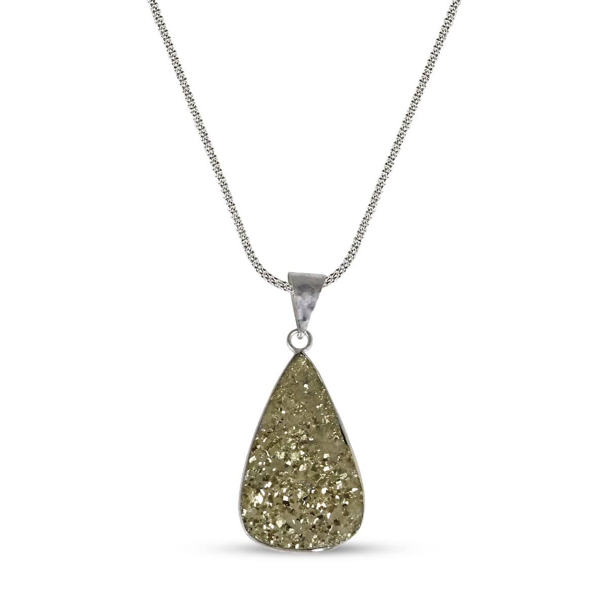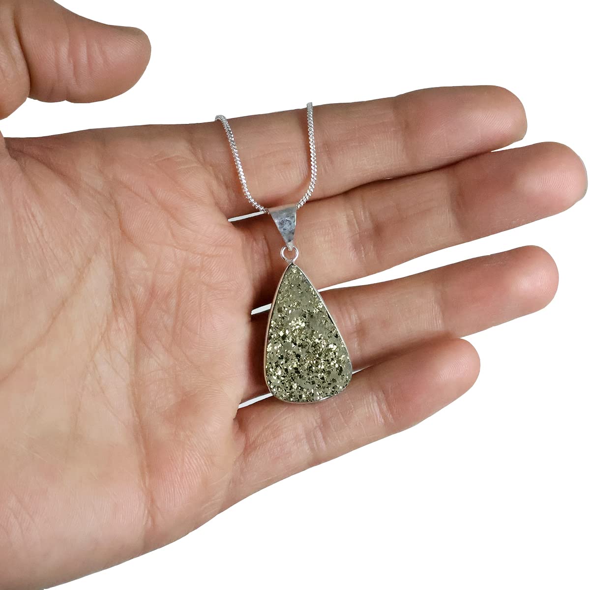 - Handmade Natural Crystal Stone Pyrite Pendant | Length : 30 mm | Width – 15 mm Approx. Charged By Reiki Grand Master & Vastu Expert