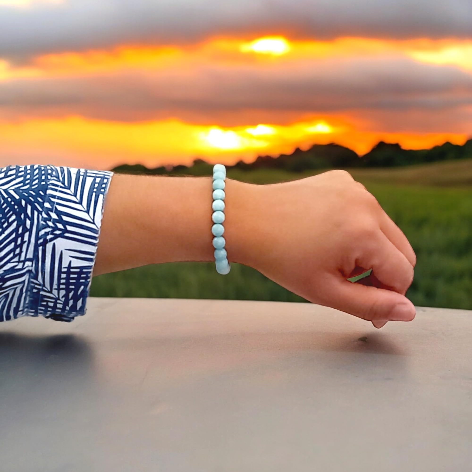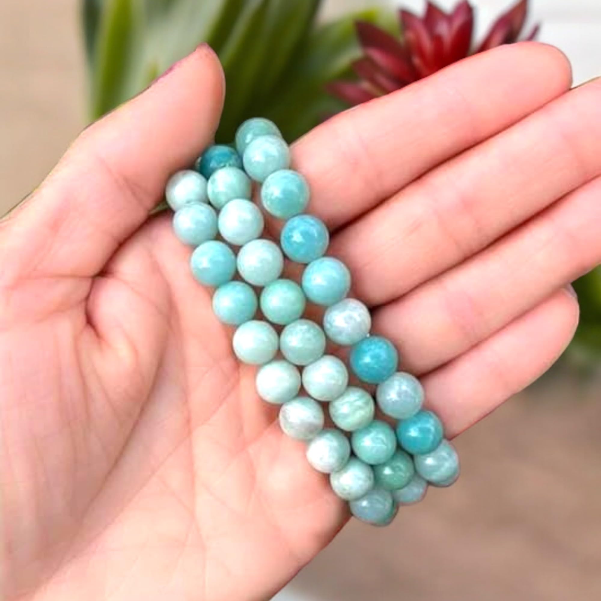- Dip into the soothing charm of the Amazonite bracelet, a serene gemstone celebrated for its calming and balancing properties. With its tranquil shades of green, Amazonite is believed to harmonize energy, encourage heartfelt communication, and bring a sense of peace. Adorn yourself with the Amazonite bracelet to invite a wave of serenity into your life, fostering emotional well-being.
