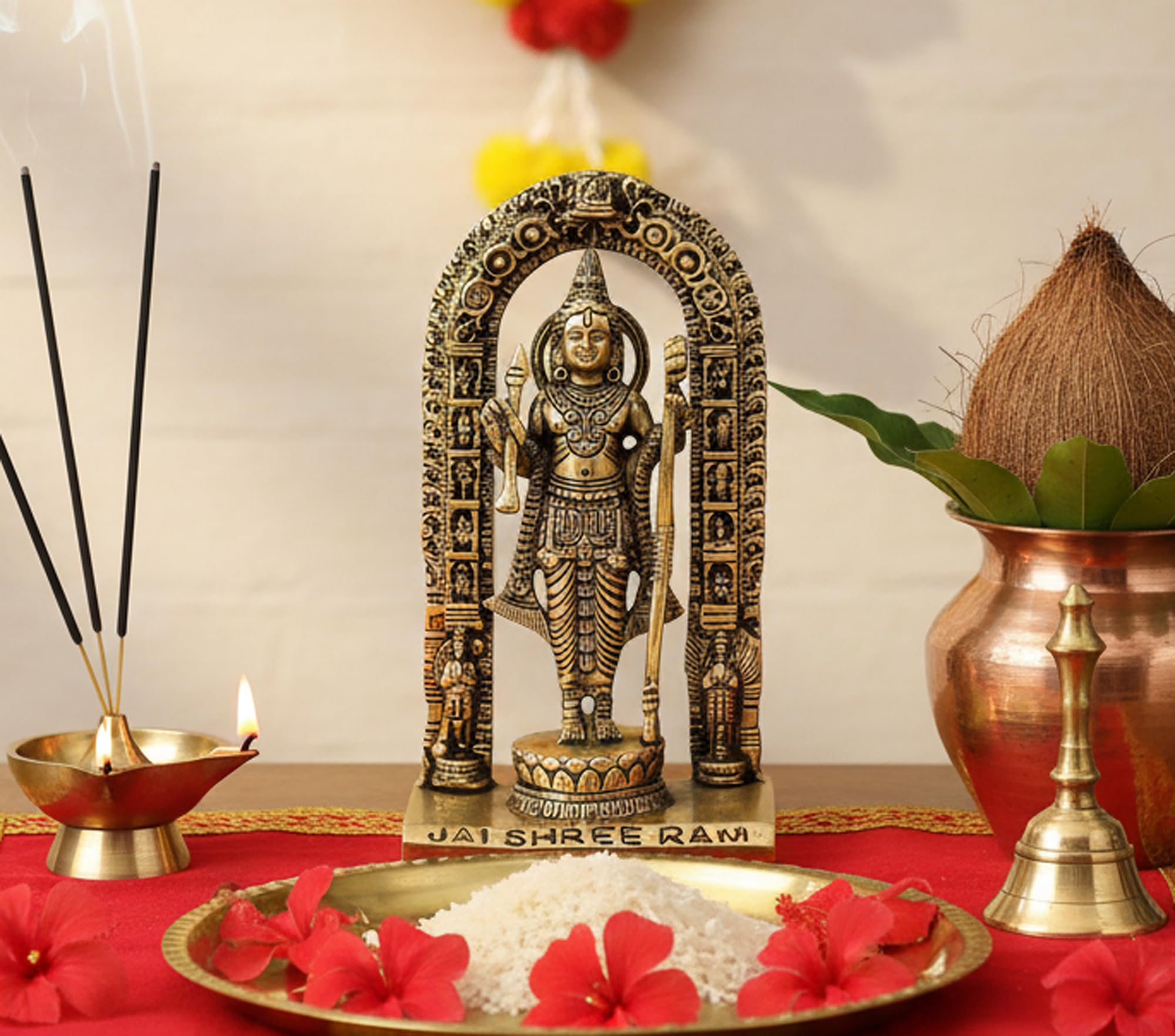 • Exquisite Craftsmanship: This ESPLANADE Brass Ram Lalla Shri Ram Idol is a beautifully handcrafted brass figure, capturing the divine essence of Lord Ram.