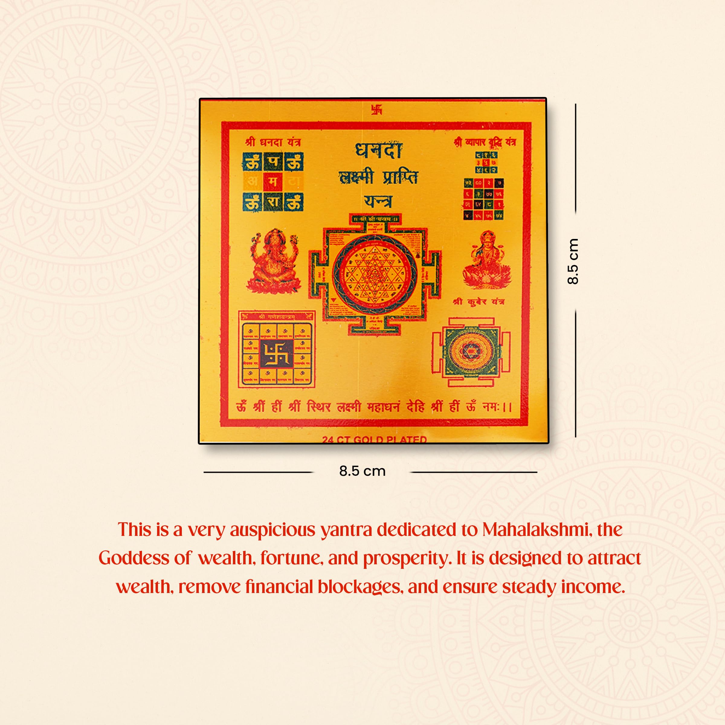 The Gemsmantra Dhanda Laxmi Yantra is a powerful spiritual tool designed to attract wealth, abundance, and financial prosperity. Dedicated to Goddess Laxmi, it enhances business growth, ensures steady income, and removes financial obstacles. Placing this Yantra in your workplace or home can boost confidence, invite positive energies, and promote success in all monetary matters. Energized and crafted with precision, it helps maintain focus, harmony, and positivity in your professional and personal life4