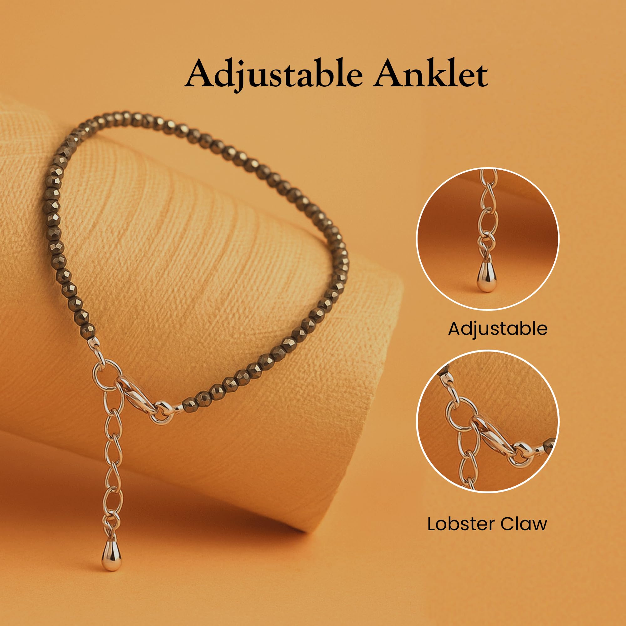 Step into style and spirituality with the Just Lord Pyrite Anklet for Women. Pyrite, long trusted as a symbol of wealth, confidence, and protection, is combined here with nazar/evil eye beads that shield you from negative energy. The lightweight payal-style chain offers a perfect balance of fashion and tradition, making it easy to pair with both western outfits and ethnic wear. Whether you’re dressing for a party, festival, or just adding charm to your daily look, this anklet uplifts your aura while upgrading your style. With its adjustable fit, spiritual benefits, and chic design, this anklet makes a thoughtful gift for loved ones girlfriend, wife, sister, or friend. Enhance your jewellery collection with a piece that is not only stylish but also infused with positive energy.