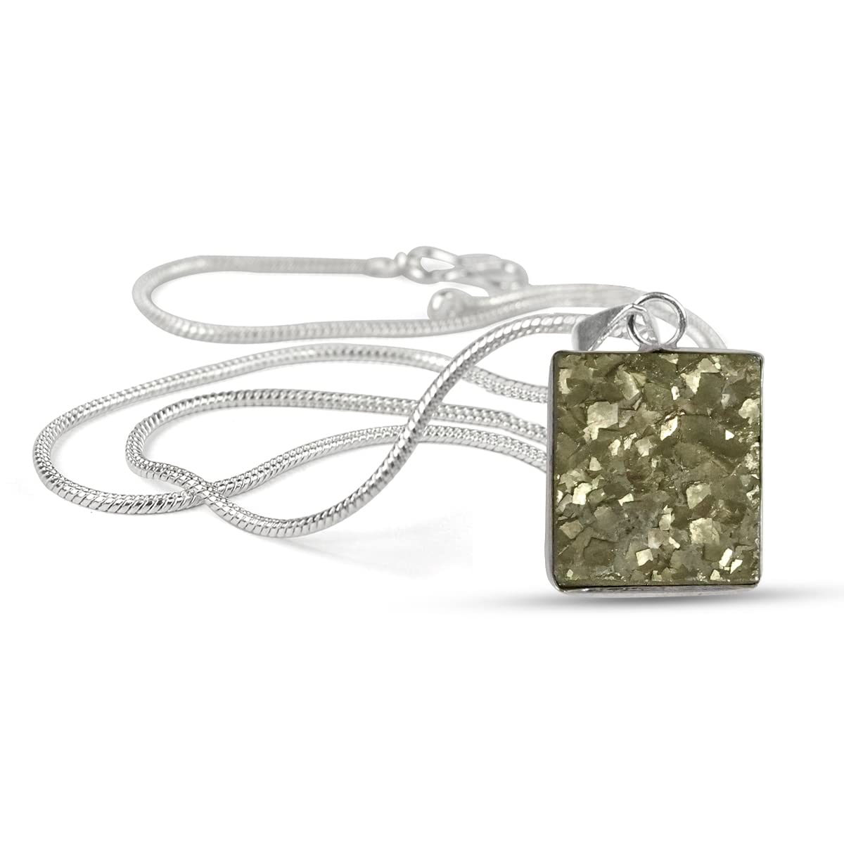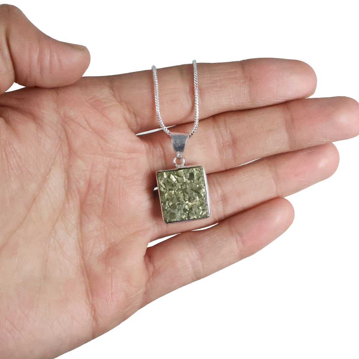 Handmade Natural Crystal Stone Square Shape Pyrite Pendant | Length: 30 mm | Width – 15 mm Approx. Charged By Reiki Grand Master & Vastu Expert