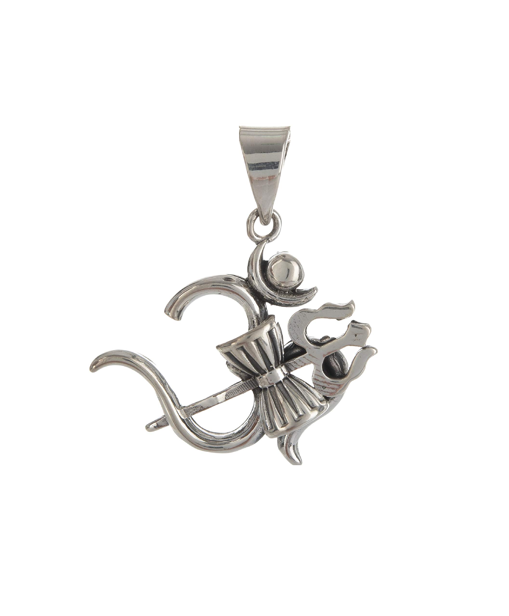- OM TRISHUL DAMRU TRINITY PENDANT: Unbreakable, thick and very attractive REAL SILVER pendant for calm and happiness in life. TRISHUL bring tri shakti, calm and composure in life. Suitable for everyday use in both office and home. Traditional Indian religious SHIVA OM TRISHUL DAMRU symbol pendant.